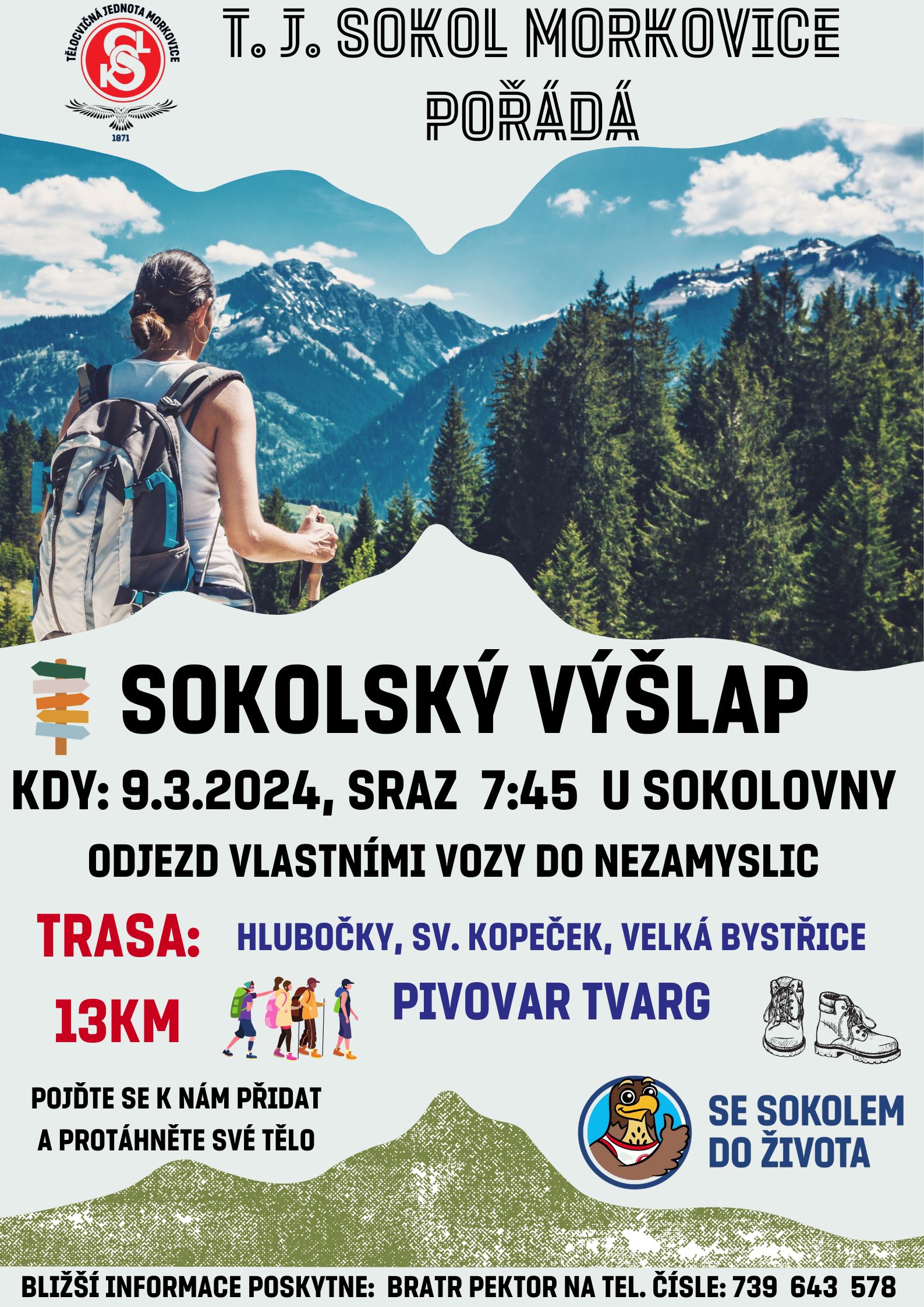 T.J. Sokol Morkovice pořádá v sobotu 9.3.2024. Sokolský Výšlap: Hlubočky, Sv. Kopeček, Velká Bystřice – Pivovar TVARG.