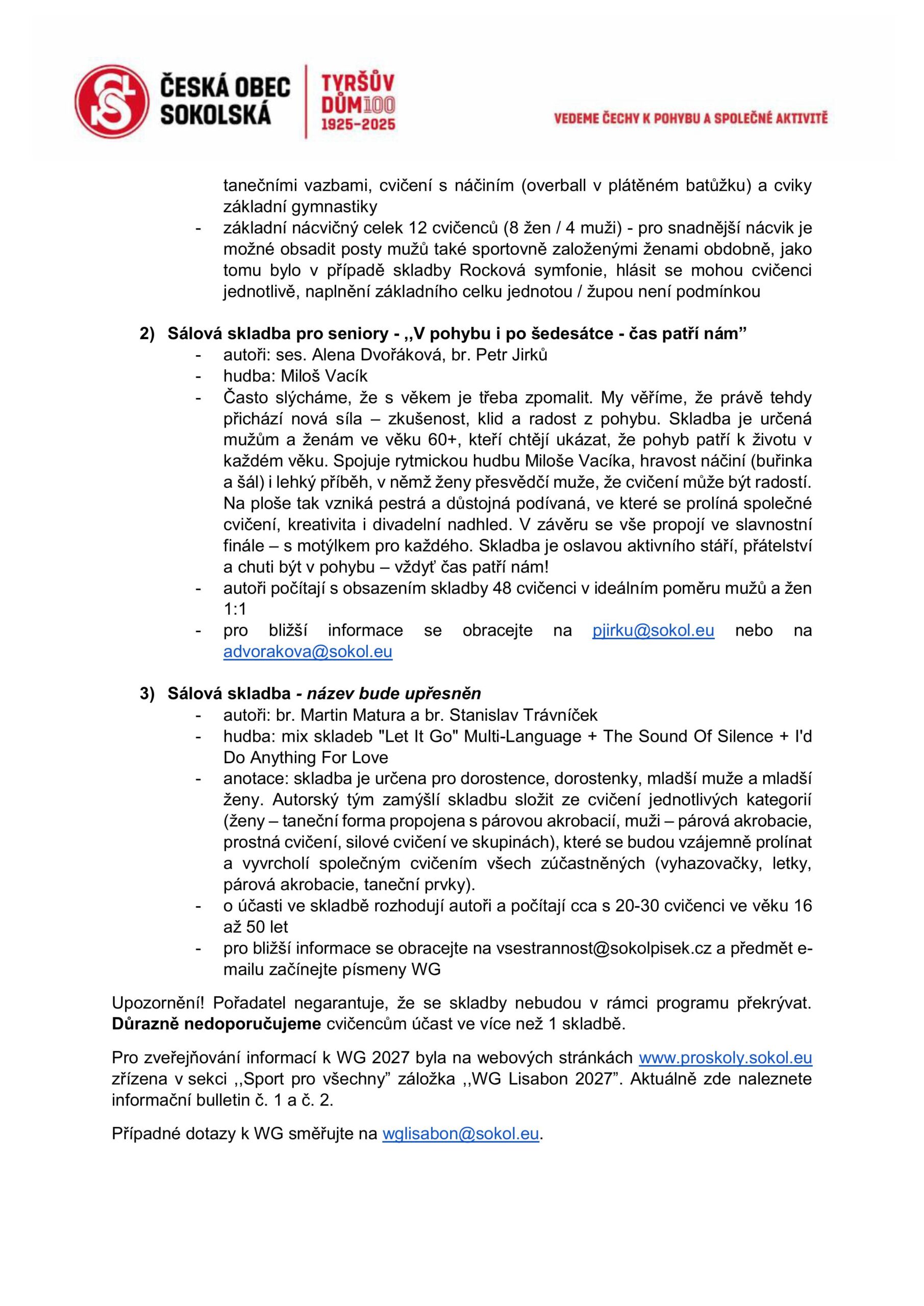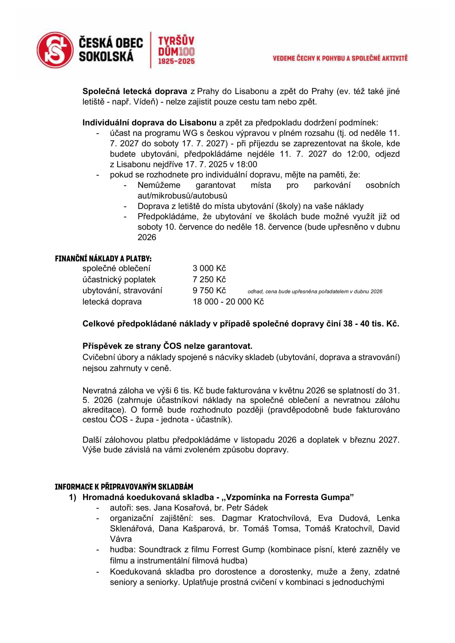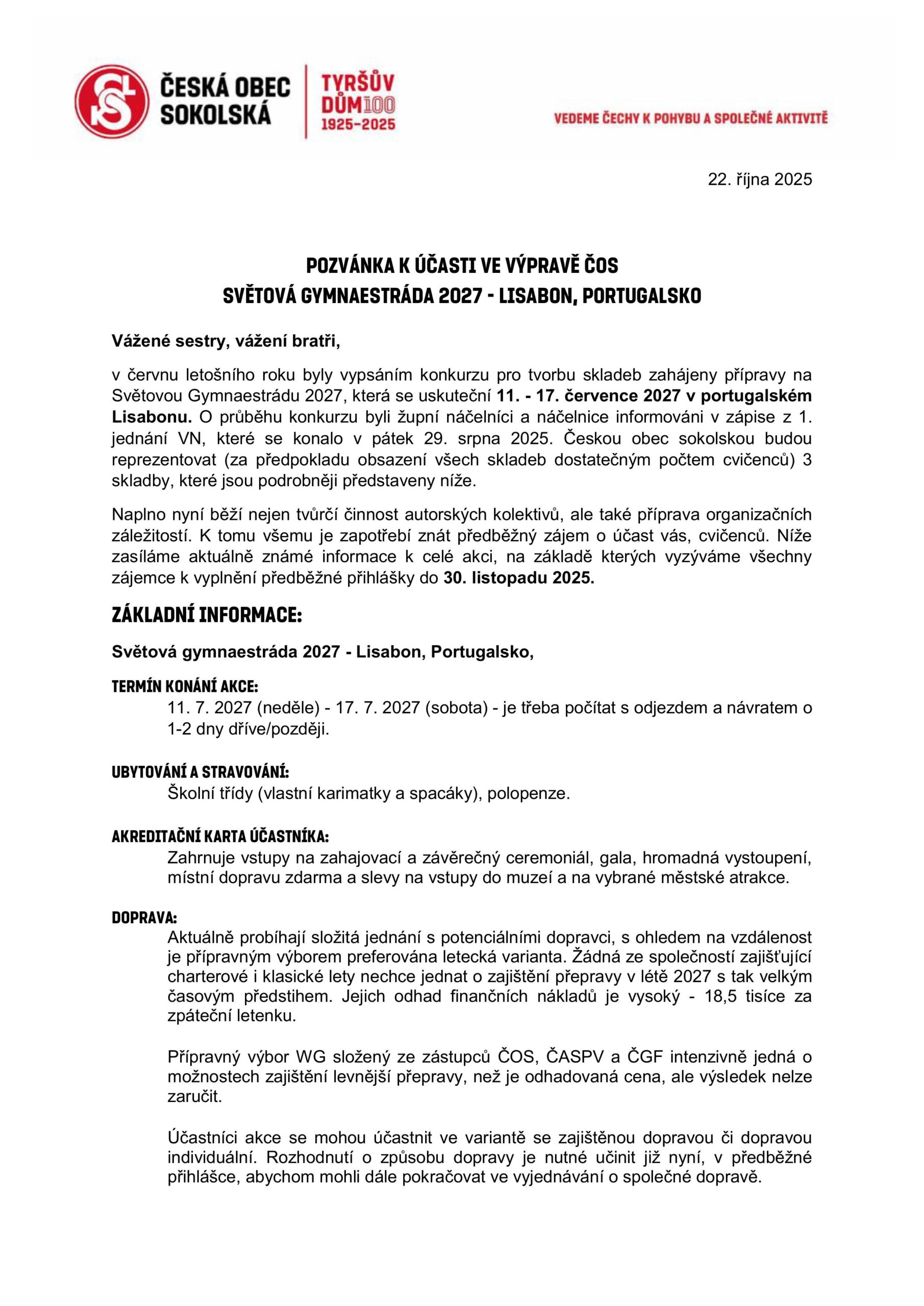 🏋️♀️ Pozvánka k účasti ve výpravě ČOS na Světovou gymnaestrádu 2027